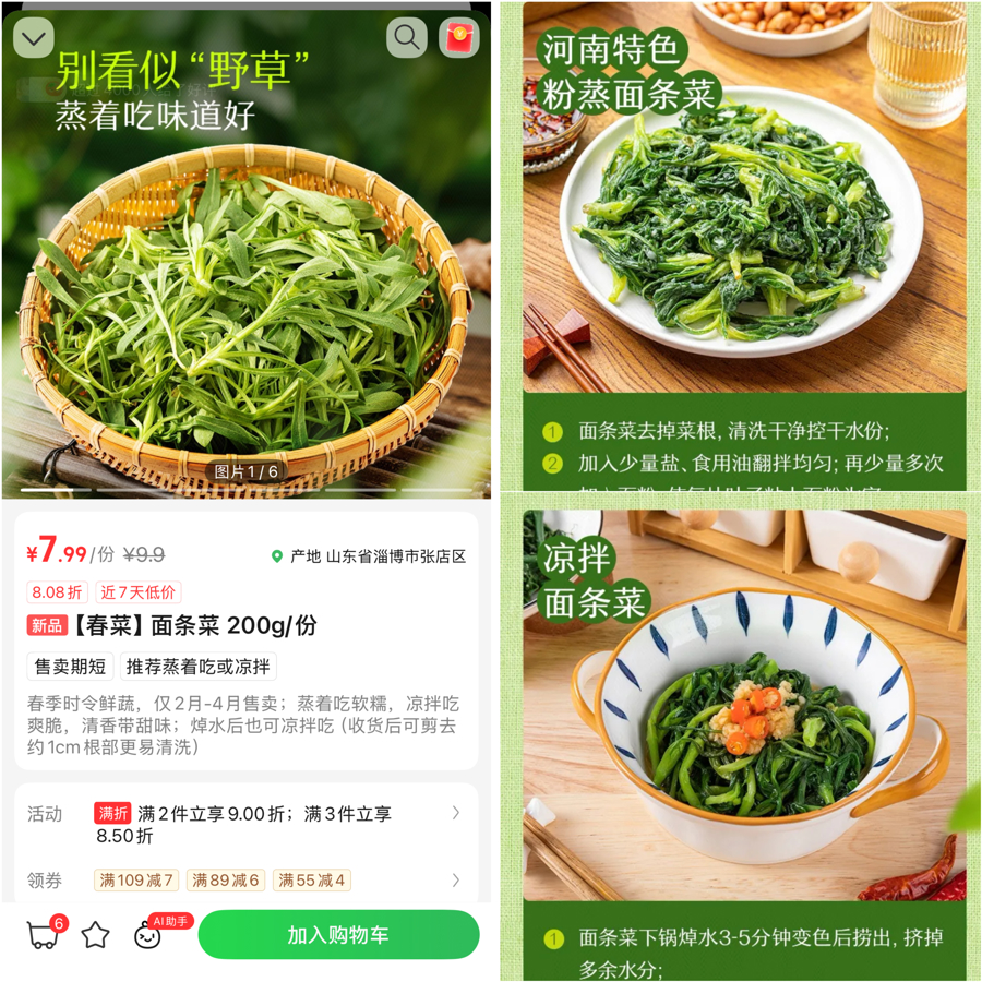这两年,随着电商平台加大春菜采销力度,市场还出现了很多稀奇春菜,比如来自潮汕的“珍珠菜”,来自山东、河南的“面条菜”,仡佬族、瑶族、壮族等少数民族的药食同源植物“富贵菜”等。很多平台都会推出视频图文讲解,帮助消费者认识并烹饪这些春菜,及时尝鲜。