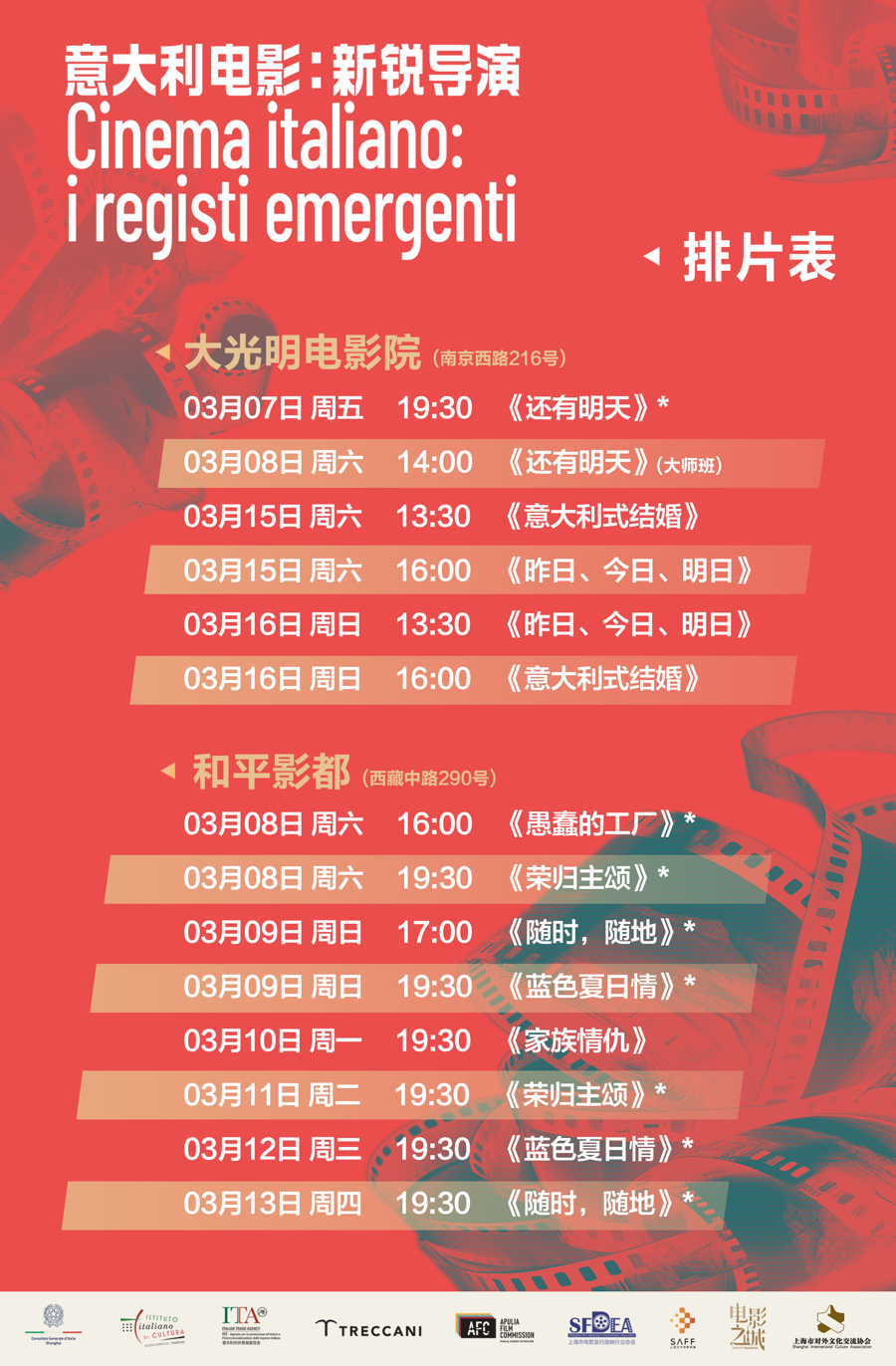 今年是中国与意大利建交55周年,为促进中意文化交流,意大利罗马特雷卡尼百科全书研究院、上海市电影发行放映行业协会、意大利普利亚电影委员会将于3月7日至3月16日在大光明电影院和和平影都举办“意大利电影:新锐导演”影展。本次意大利电影展将以最高放映规格,展现8部意大利电影新作与历史经典,丰富观众的大银幕体验,其中包括宝拉·柯特莱西自编自导自演的《还有明天》。目前影展已经开票。