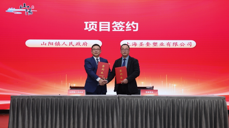 今天的活动现场,山阳镇分别与上海圣奎塑业有限公司、上海达技实业有限公司进行了项目签约。