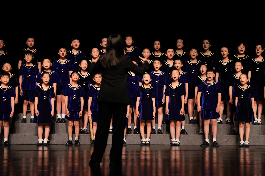 系列首场音乐会,杨浦区少年宫合唱团正在演唱。