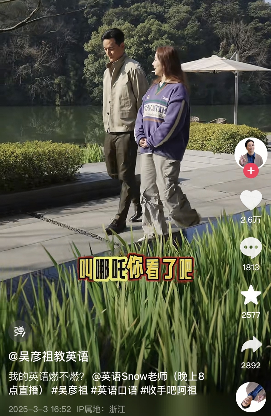 此外,,吴彦祖还围绕热门电影《哪吒》展开了英语教学。他通过一问一答的形式,生动形象地解释了电影中“急急如律令”和“我命由我不由天”的英文说法,分别是“be quick to obey my command”和“I am the master of my destiny”。在解释过程中,吴彦祖还不断重复这些英文表达,以帮助观众加深记忆。