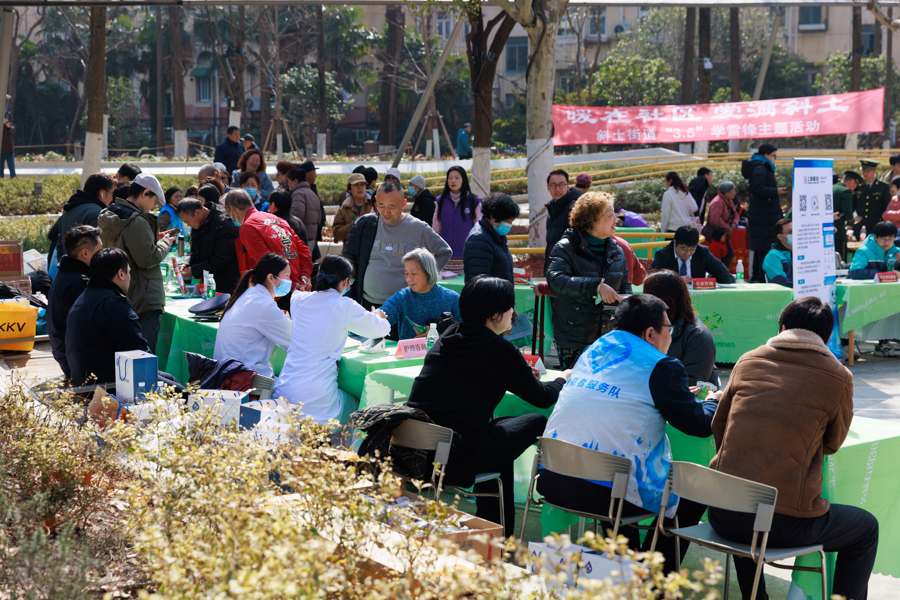 今天(5日)是学雷锋纪念日。日前,徐汇区斜土街道在日晖绿地举办“暖在社区 爱满斜土”志愿服务专项行动。日晖有戏的摊位前,Q版漫画融入戏曲元素,精巧可爱,吸引了不少居民排队。