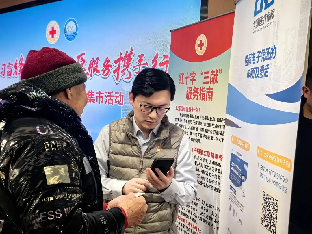 在“苏河之眸”零距离家园综合体,由黄浦区红十字会联合南京东路街道党工委、办事处共同主办,黄浦区区级机关党建第五片组部分单位积极参与的“学习雷锋好榜样,志愿服务携手行”主题志愿集市,通过应急救护知识普及、“三献”宣传、健康筛查咨询、医保政策宣传以及妇女儿童权益政策解读等多种形式,将雷锋精神与红十字志愿服务相结合,将一系列便民利民、贴近生活的志愿服务送到群众身边。