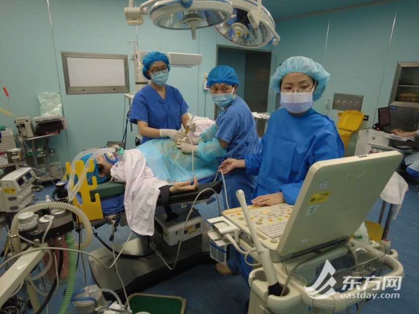2月27日,争分夺秒的抢救开始。左手持超声探头,右手持细针进行穿刺,在仁济医院妇产科胎儿医学亚专业周琼的精准操作下,穿刺针通过小琴子宫直达胎儿的左侧肋间隙,成功抽出90ml“胸水”。治疗效果出现了,胎儿的左肺明显扩张。