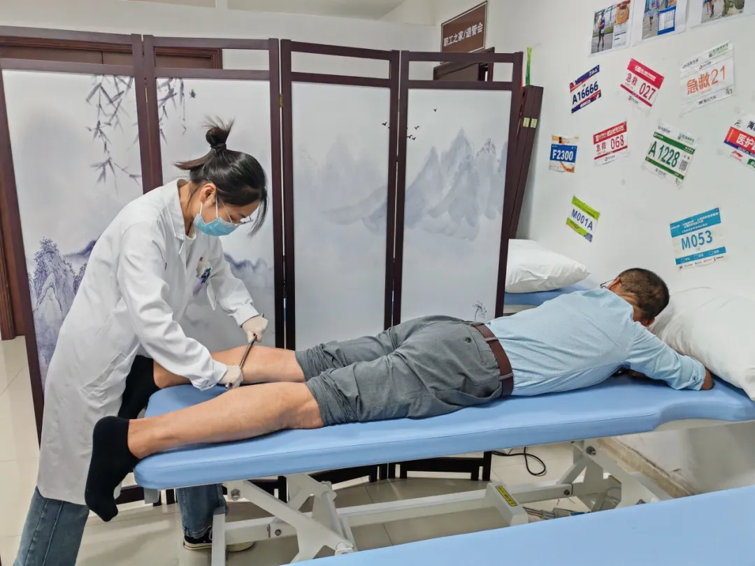 还有中医的特色诊疗技术,如筋膜刀、拔火罐、刺络放血、龙氏正骨手法、铜砭刮痧、南少林功法推拿经络推拿、电针等。帮助马拉松跑友们赛后更快恢复。这可比自己拉伸更有效果!