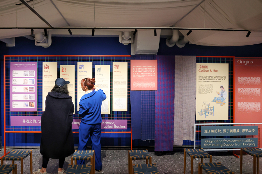 如何将非遗棉纺织技艺与商业空间相结合?华之门广场邀请了“融设计图书馆”团队,从黄道婆和上海棉纺织文化出发,深入挖掘棉纺织工艺,并将其解构、转译为当代建筑设计语言。值得一提的是,创立于2015年的融设计图书馆是中国最早成立的非营利性传统手工艺材料图书馆。目前,该馆正探索建立中国传统材料的分类体系和数据库,以此鼓励国内外艺术家积极使用中国传统手工艺材料进行创作。