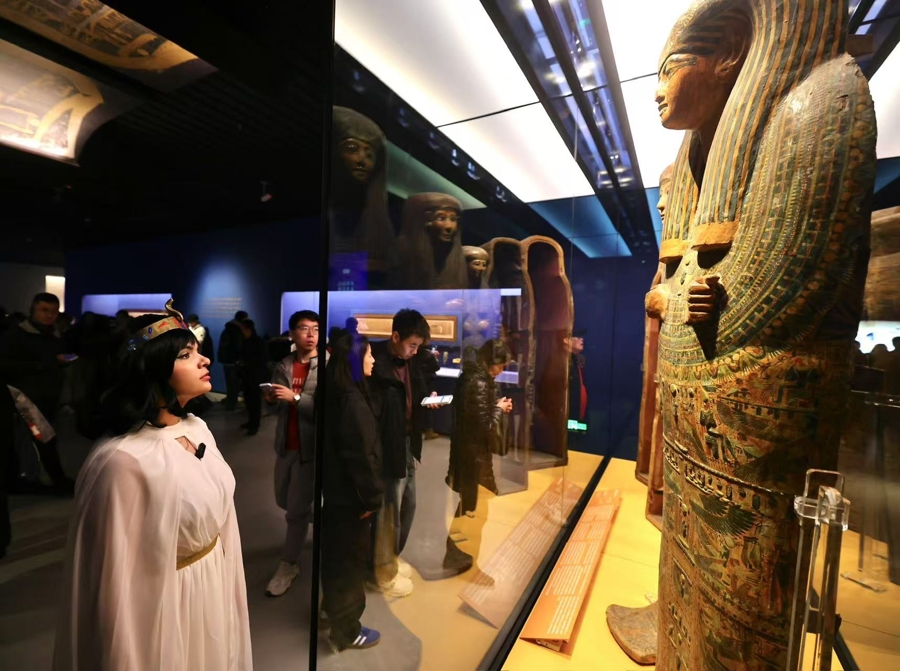 外籍友人参观“金字塔之巅:古埃及文明大展”