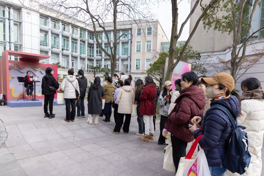 伴随书香、咖香、花香,钟书阁(泰晤士店)内不少市民品咖慢读,尽享悠然时光。现场发布的“女性友好书单”“儿童友好书单”“家庭友好书单”甄选27本好书,为市民送上阅读推荐。另一边,区妇女儿童发展中心点位则搭建“她说亭”,多名女性在此分享所思所悟,互赠美好祝福。与此同时,普法游园、非遗手作等互动体验同步展开,节日氛围在欢声笑语中层层升温。