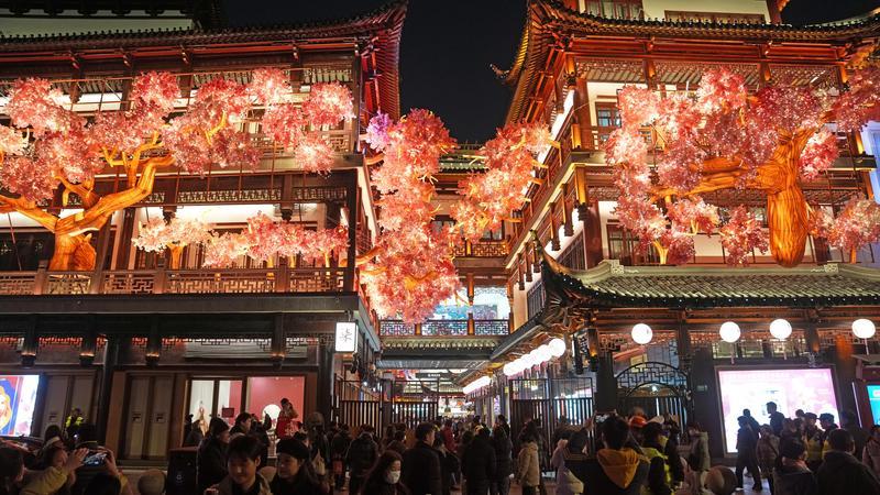 2025年2月4日,春节假期最后一天,上海南京路步行街游客如织。 视觉中国 图