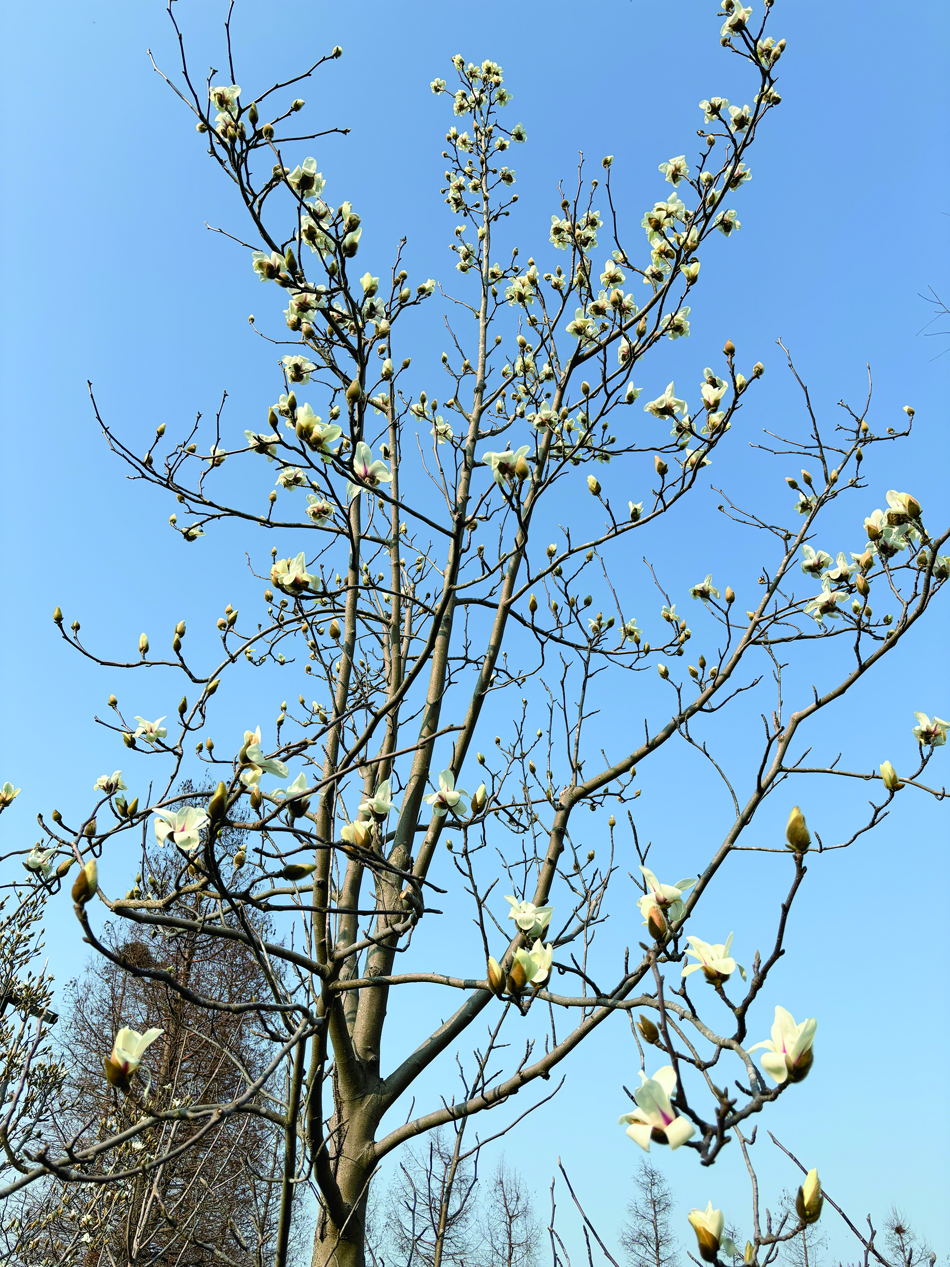 玉兰吐蕊,柳树发芽,茸城春意渐浓