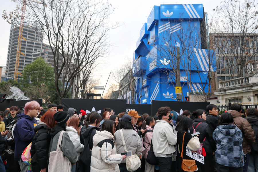 3月7日晚,位于静安南京西路最西端的小马路永源路,人流如织。短短300多米路上,从四面八方涌来大量年轻人。时尚运动品牌阿迪达斯将整条永源路街区“包”下来,打造成“贝壳头”限时主题街区,活动从本周五持续到本周日。