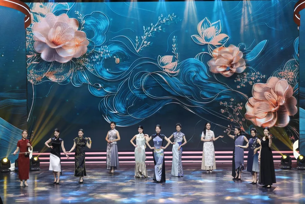 “海派旗袍文化训练营”的“小海鸥”和上海师范大学音乐学院艺术团的女大学生们,穿着自己设计的旗袍,伴随着中西合璧乐器的演奏,自信满满地走上舞台,演绎青春芳华。