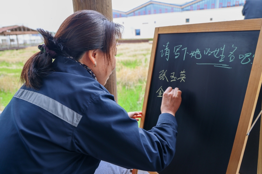 今年三八妇女节,张林莉将镜头对准了村里的女性。展览“未名的她”分为三部分:38张照片记录妇女劳作与微笑的瞬间;围兜、雨鞋等实物展呈现她们的生活痕迹;互动板上,观展者被邀请为照片中的女性补全姓名。