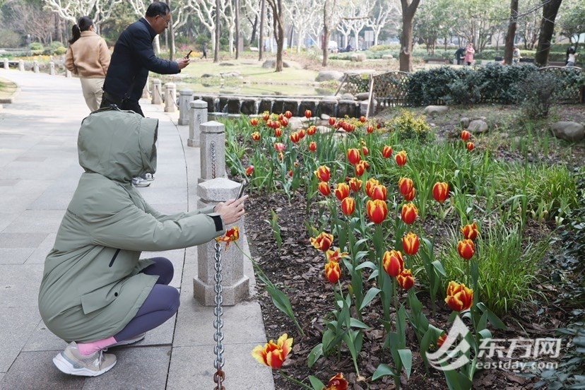 今天体感舒适,又恰逢“三八”国际妇女节,不少市民安排了出游赏花等活动。在徐家汇公园,白玉兰进入最佳观赏期,羽扇豆长势喜人,郁金香含苞待放,吸引市民游客流连忘返。