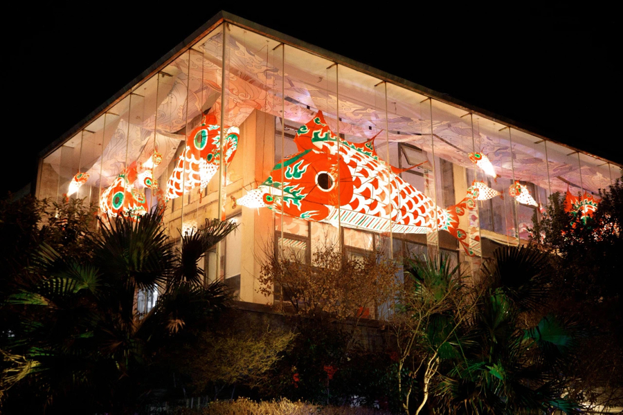 当最后一尾鱼灯隐入黛色苍穹,全景玻璃盒点亮了3D鱼灯装置,焕新不止于物理空间迭代,更在于激活了古城更新的文化算法——是工业记忆与非遗技艺共生,也是江南美学嵌入现代空间的重新编码。