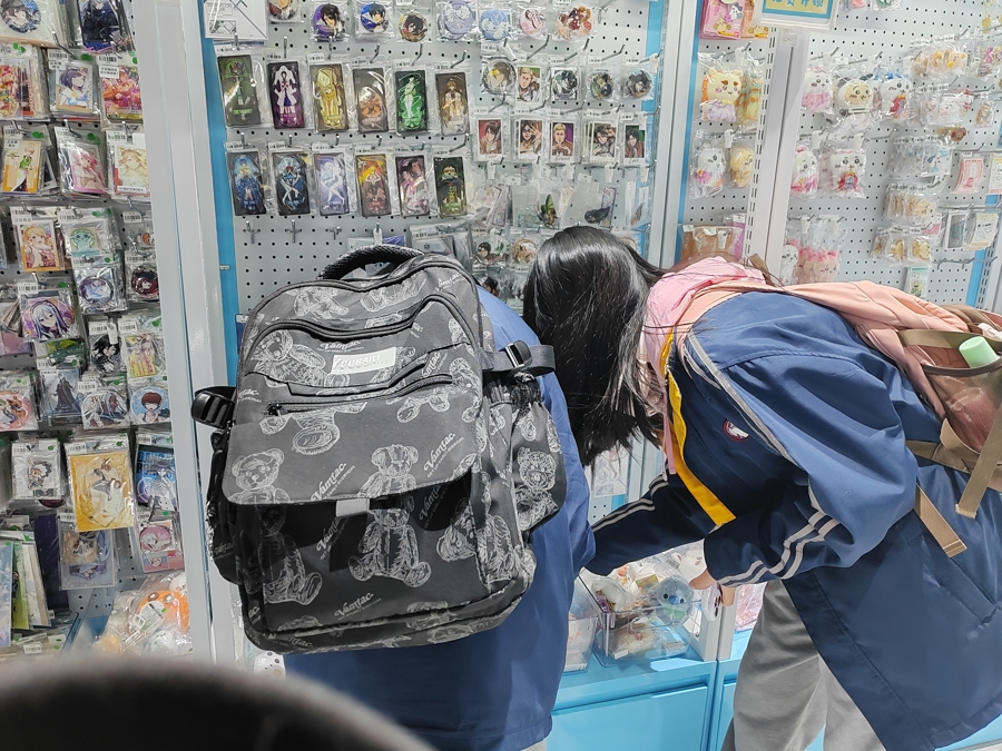 周五下午五点,谷子店里已有不少穿着校服逛街的年轻人。