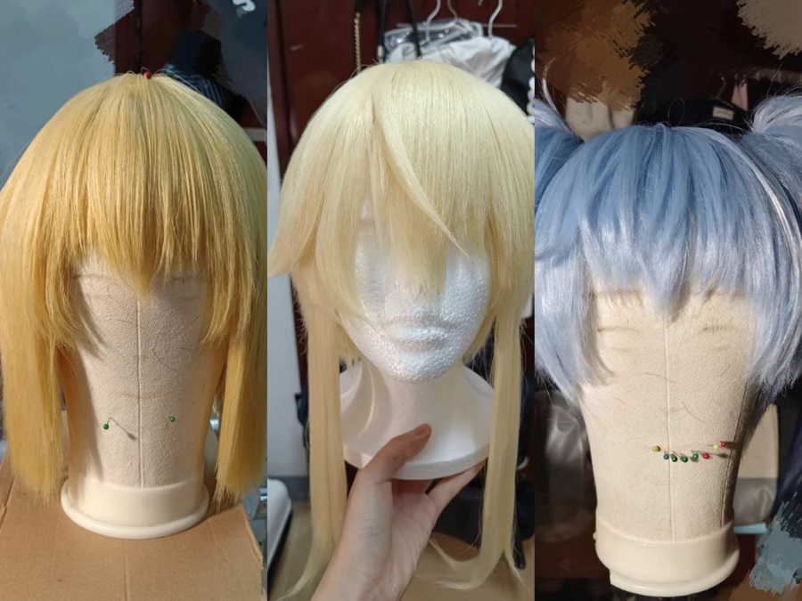 大四学生池江喜欢每周末扮演成自己喜欢的角色逛街,她的假发几乎都是手工修剪。就在上个周末,她戴上自己制作的假发参加了《钻石王牌》快闪店。池江告诉记者,Cosplay(角色扮演)的假发多为购买普通假发,又称毛坯,再加上毛娘的手工修改后成型的。一般情况下,一顶基础款假发大约在50元到200元前后,但手工费在200元至数千元不等,差别极大。为了省钱,池江自己也成为毛娘(制作打理假发的人),偶尔接单来挣取一些生活费。“现在B站上有成套的修剪教程,我跟着视频学了三周就能接基础单。”