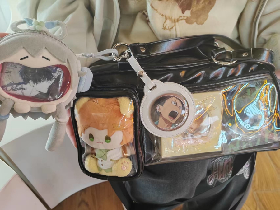 周六上午十点,李颖站在第一百货三楼的动漫周边店前。这家店的货架上,《咒术回战》的亚克力砖、《排球少年》的立牌以及《原神》的徽章琳琅满目。她仔细观看着每一款商品,最终挑选了几款心仪的徽章和钥匙扣。