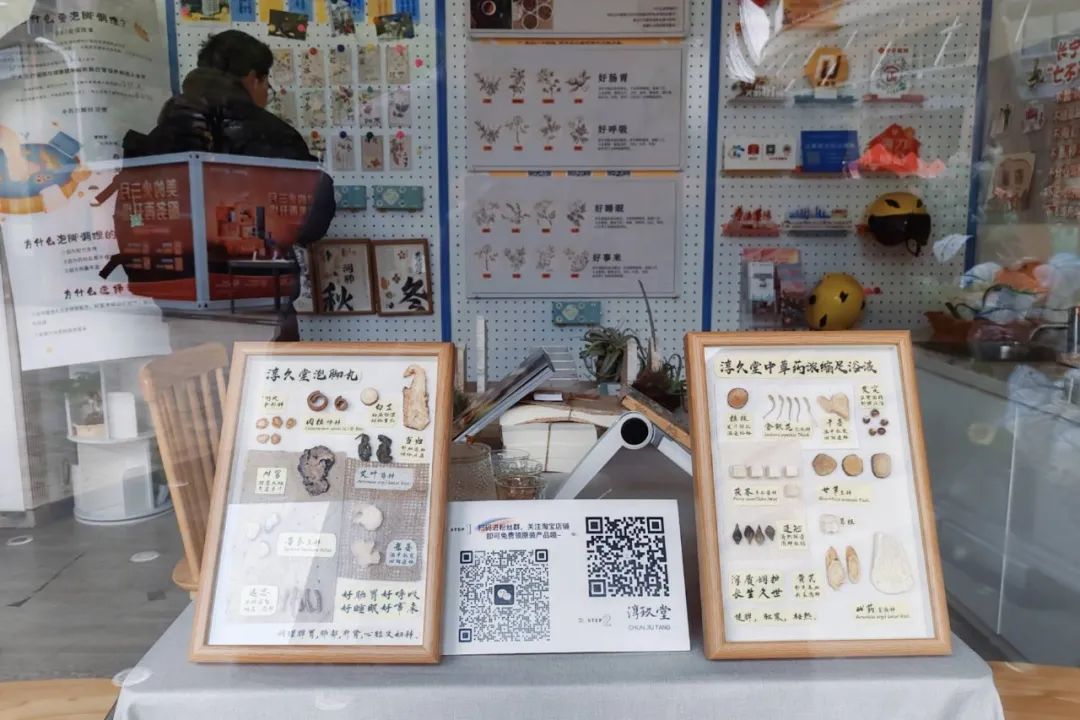 踏入“暖新巢”,便能看到墙上清晰地展示着各类中草药的名称及疗效,陈列架上摆满了淳久堂的系列产品。“90后”创业者王迪热情地接待了大家,她曾在地产咨询领域深耕8年,长期快节奏的工作让她的身体不堪重负,身边的朋友也因健康问题陷入困境,而彼时已接触中医治疗养生的她,毅然决定转型。“财富再多,也换不回健康。”王迪感慨地说。