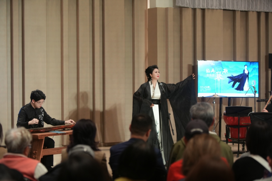 琴歌是中国古代文人雅士的重要艺术形式,它以古琴伴奏,演唱古典诗词,既展现了古琴的独特音色,又通过诗词传达了深厚的文化内涵,是文人精神与审美追求的体现。3月9日晚,女高音歌唱家、上海音乐学院声乐歌剧系副教授刘芳瑛经典琴歌音乐会在上音歌剧院管弦乐排练厅上演,她演唱了《关雎》《子夜吴歌》《凤求凰》《胡笳十八拍》《古怨》《阳光三叠》等琴歌。这场音乐会是对传统琴歌的致敬,更是对这一古老艺术形式的传承与创新。