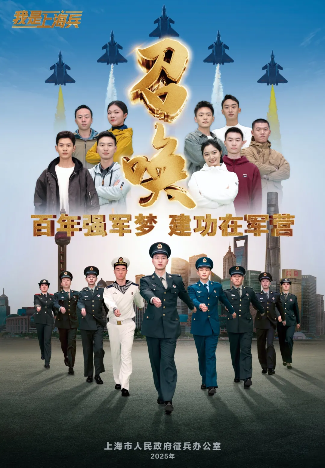2025年上海市征兵宣传工作全面展开,以“百年强军梦建功在军营·我是上海兵”为主题的宣传海报全面发布。