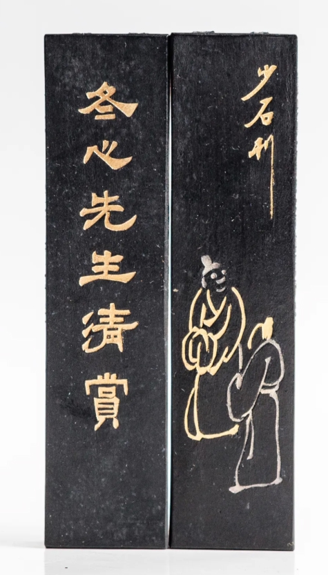 展品中更有许多精品名墨,古韵飘香,琳琅满目。如镌有“酒为礼节有宜体悦”迴文诗的三雅墨,嘉庆年间的龙凤呈祥墨、嘉庆庚辰年的膺德堂墨,七十二鸳鸯唫社所用墨、道光咸丰年间的虔制药墨,纪念辛亥革命纪念墨、纪念二次革命的光复纪念墨等。众多文人定制墨中,有些曾为名人所用,历经康雍乾三朝的扬州八怪之首金农的“冬心先生清赏”墨,乾隆于宗瑛的“来鹤堂书画墨”,海派吴昌硕的“寒香”墨等,人文馨香、丰韵凝铸。