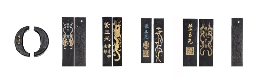 展品中一些墨见证了近代上海文房用品的制作和发展。如宋四家组墨之一玉局神仙墨,是同治甲子(1864)年端友迁徙来沪,当年即与钱慧安、王萃仁携手合作徽墨,“上海制作”首锭墨可以视为海派徽墨的发轫始作。