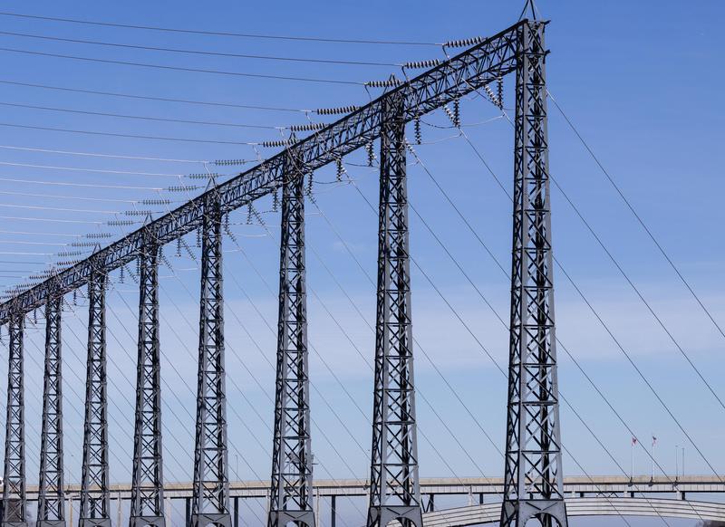 位于加美边境地带的亚当·贝克爵士水电站输电线。新华社 图