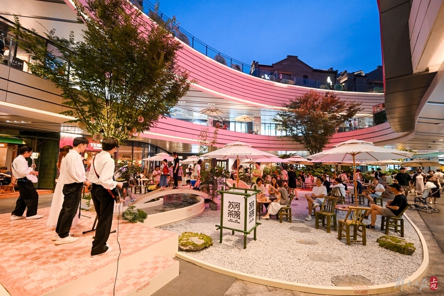 以文创为引领的商贸服务业方面,苏河湾重点发力首店经济、夜间经济、二次元经济,吸引到众多全球顶尖企业中国大型分销商总部以及时尚消费和食品日用类品牌商中国贸易总部。以苏河湾万象天地为代表的旗舰级商业,拥有近 140 个品牌,各类区域首店概念店旗舰店占70%。作为“超级IP首发地”大悦城,每年有近300场落地活动,超30场国际顶流IP快闪首站落地,去年以来商业销售额提升近45%。