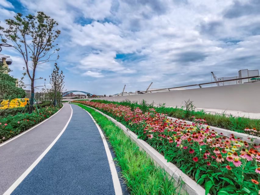庙行镇以“一T双环”空间格局为统领,精心雕琢“3分钟进公园、5分钟亲水岸”的全域慢行系统。目前全镇绿化覆盖率38.6%,公园绿地密度位居上海前列。蕰藻浜-东茭泾7公里T型滨水空间全线贯通,形成“水绿交融、城景相依”的生态长廊。康宁路绿道改造项目将2.54公里的线性空间升级为“可漫步、可休憩、可感知”的城市绿脉,长江西路口袋公园等7处口袋公园扮靓街角巷陌,让市民“推窗见绿、出门入园”的梦想照进现实。