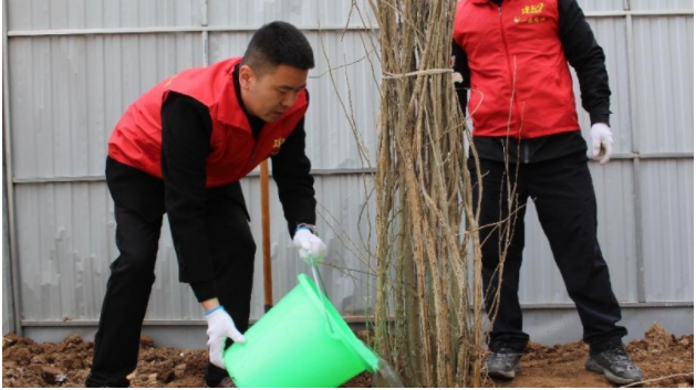 活动中,大家挥锹翻土、疏整地块,扶苗定根、培土夯实,分工协作,挖坑、栽树、填土、浇水,共同完成树木栽植,为原本略显空旷的区域增添了一片新绿。同时,还设置了“树牌”,为每一棵树落实责任人。