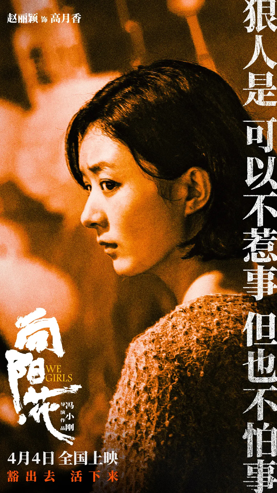 随后发布定档海报的是由冯小刚执导,赵丽颖领衔主演的《向阳·花》,面对生活的坎坷挑战,每个角色身上都呈现出不服输的韧性与顽强的生命力:高月香(赵丽颖 饰)霸气锁喉反制恶徒,面对所遇不公亲手遏制命运咽喉,大胆持刀相对,眼神写满了倔强无畏;黑妹(兰西雅 饰)即使被推倒在地,仍咬紧牙关试图再次爬起;胡萍(王菊 饰)气势夺人,与人对峙也绝不轻易低头;郭爱美(程潇 饰)拒绝恶意指责,坚定相信自己内心。预告中,高月香更是一亮相,就给了挑衅自己的人贩子狱友一记响亮的耳光。其实这是一个“苦命”的角色,为给女儿购买价值20万的人工耳蜗,高月香铤而走险,被判刑入狱两年四个月,也因这段经历她结识了黑妹、邓虹、胡萍和郭爱美。她们虽然性格不同,但却都有“和生活硬碰硬”的态度,不服输、不认命的她们,面对命运挑战,面对面对出狱后周遭的冷眼与排斥,一路为彼此撑腰,向阳重生。这几乎是近年来影坛上罕见的,聚焦刑满释放女性的生存困境,真实反映她们在回归社会过程中面临的道德审判、生存压力与情感挣扎的勇气之作。