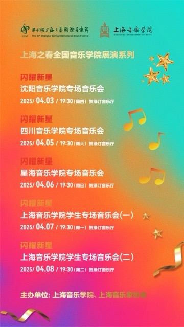 “闪耀新星”舞台上,中国音乐“新势力”竞相争艳。来自上海音乐学院、沈阳音乐学院、四川音乐学院等优秀院校的学生将在上音歌剧院举办专场演出。 “艺青春”则为青年音乐家提供顶尖展示舞台,而覆盖更广泛学生群体的“星梦启航”以普及性活动激发年轻学子的音乐热情,构建从启蒙到进阶的培育链条。 激发原创活力