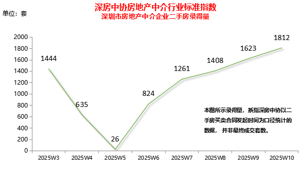 据深圳市房地产中介协会统计,2025年第10周(3月3日-3月9日),深圳全市二手房(含自助)录得1812套,环比增长11.6%,已连续5周攀升,单周录得量超1800套,消费者购房意愿不断增强。