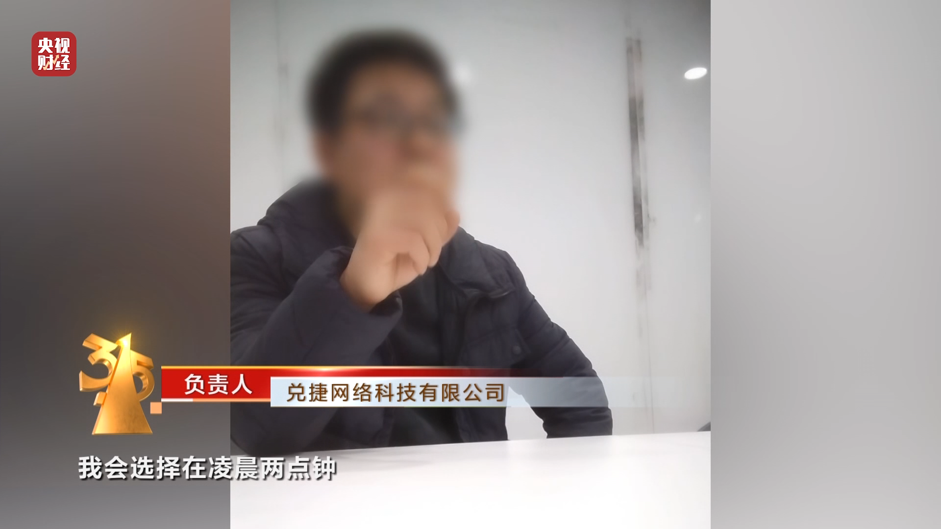 兑捷网络科技有限公司负责人:一个月之后我们再扣用户19.9元,我会选择在凌晨两点钟去扣这19.9元,当用户早上起来的时候,扣费信息已经被各种信息推送覆盖掉。至于你来不来领就你的事,但扣钱反正每个月我都扣。