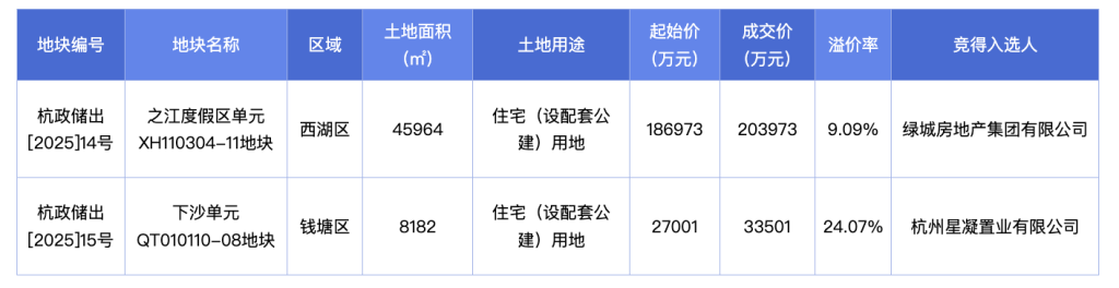 杭州第四批次宅地收金约23.75亿元,最高溢价率超24%