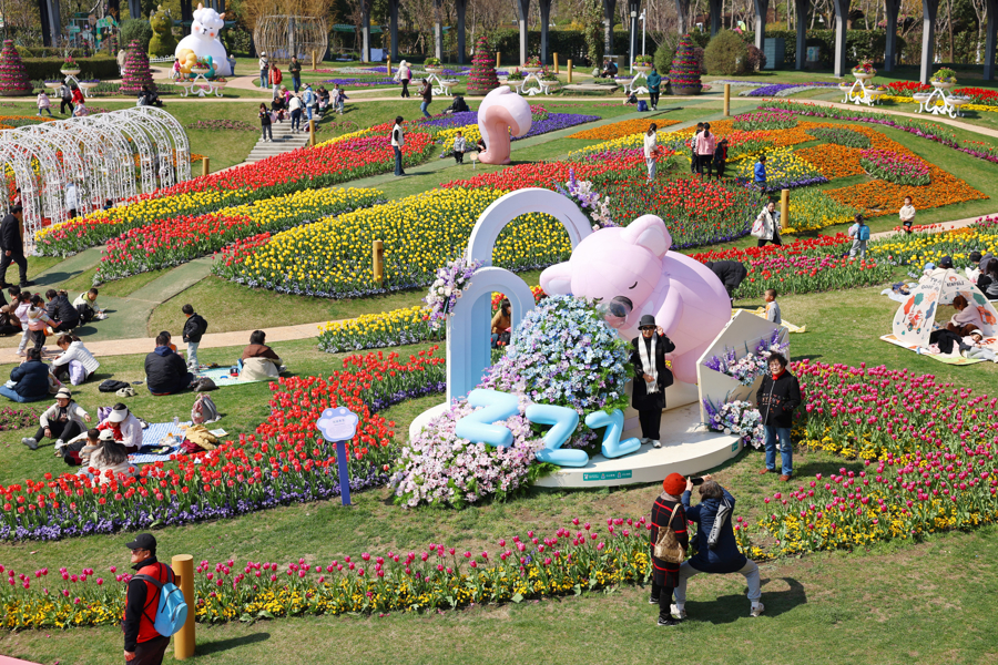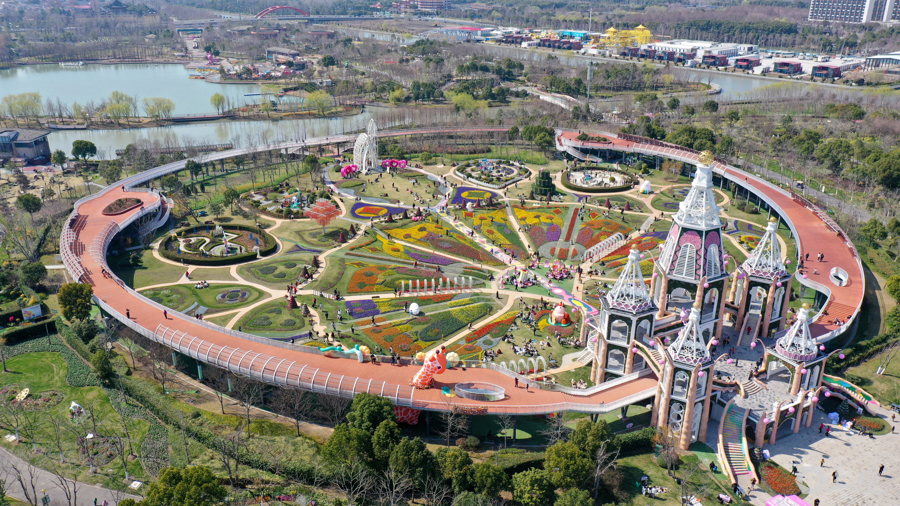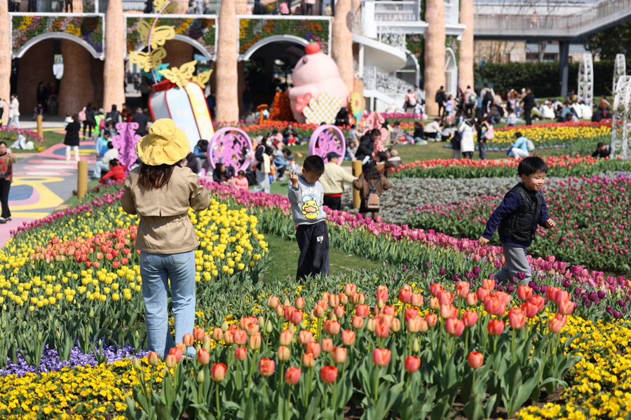 申城春意盎然,距离市区最近的郊野公园——浦江郊野公园内的上海奇迹花园开启春季花展。