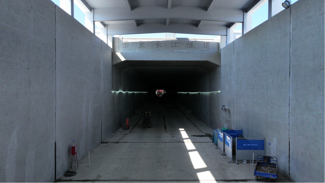 此前,隧道明挖段、路基段的主体施工已经顺利完成,崇明岛上高铁进隧道的出入口形态逐渐显现。崇太长江隧道向北与崇明特大桥相连,形成一个重要的衔接过渡区段。目前,该区段的主体结构施工已经完成,未来高铁将从这里出入崇太长江隧道。作为隧道与岛上高架衔接的路段,这里不仅承担着为高铁遮风避雨的功能,还兼顾景观需求。在施工期间,装载施工材料的大型运输车辆也以此作为通道,为工程建设提供了便利。