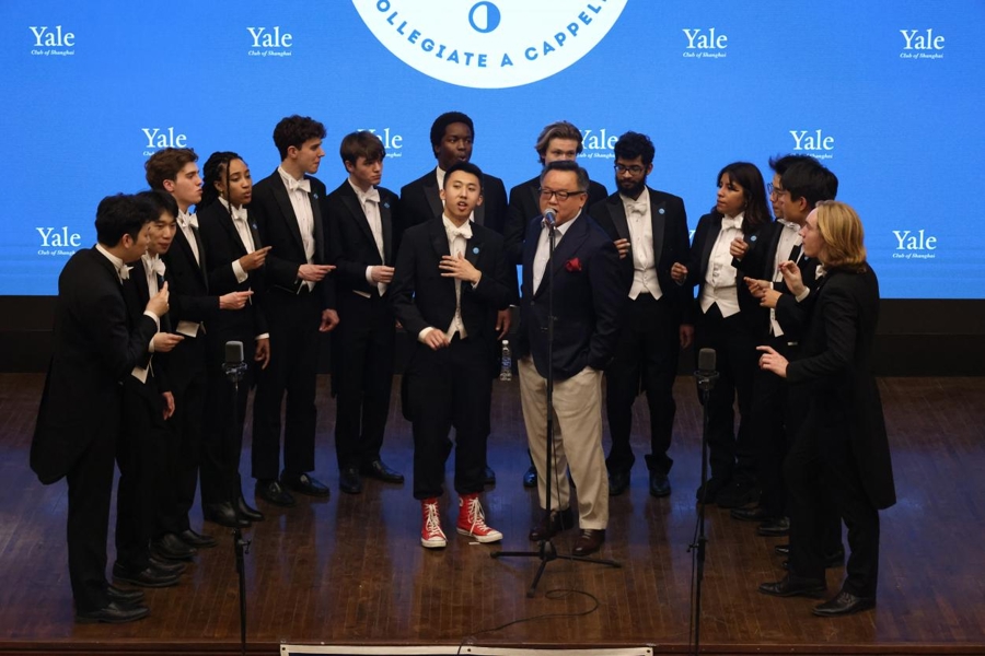 合唱团还特别为上海耶鲁校友准备了“校友即兴表演”环节,现场气氛热烈。阿卡贝拉是耶鲁大学的特色学生社团活动项目,在上海耶鲁校友会的促成下,耶鲁阿卡贝拉合唱团已经数次来华为校友会表演。