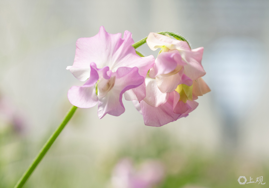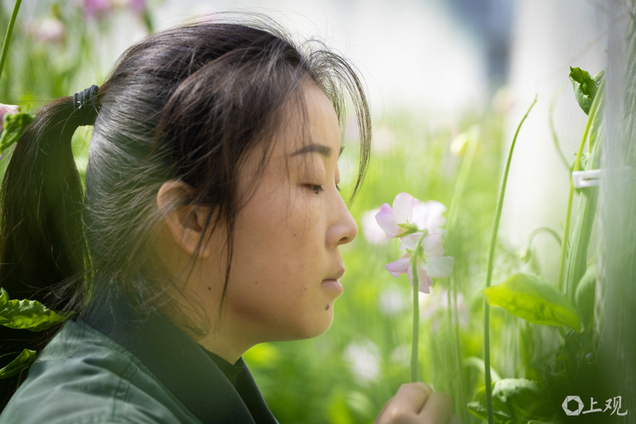 “养鲜花说简单也简单,因为只要你对它好,就会立马表现出来。”香豌豆对温、光、水、肥、气的要求很高,好在崇明的地理环境和荷兰、英国很像,为本土培育提供了得天独厚的条件。