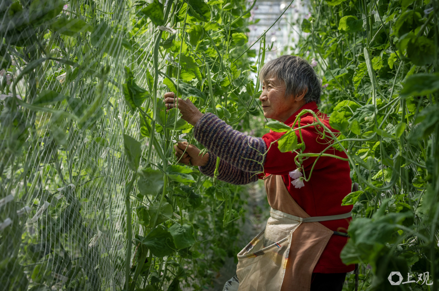 “养花是件开心的事,没想到一把年纪了还能再就业,而且就在家门口上班,现代化大棚里还有空调,冬暖夏凉的。”70岁的本地人周士兰在大棚里工作多年,对于她而言,每天在大棚里养殖花卉是名副其实的“美差”。