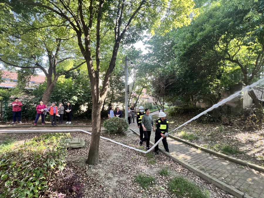 3月16日的深夜,金山区石化街道金卫三组2015号的空置厨房突然窜出滚滚浓烟,焦糊味刺破夜空。刚出门的李发诗一声“着火了”的呼喊,瞬间撕开了社区的宁静。住在隔壁的何军抄起灭火器冲上前,罗群英在浓烟中摸索着打开消防器材箱,三人毫无畏惧,动作流畅得如同排练过千百次——拔销、握管、压把,白色干粉如巨龙般扑向火舌。邻居们接力传递的水盆泼出一道道弧线,3分钟后,火焰在焦黑的废墟上偃旗息鼓。