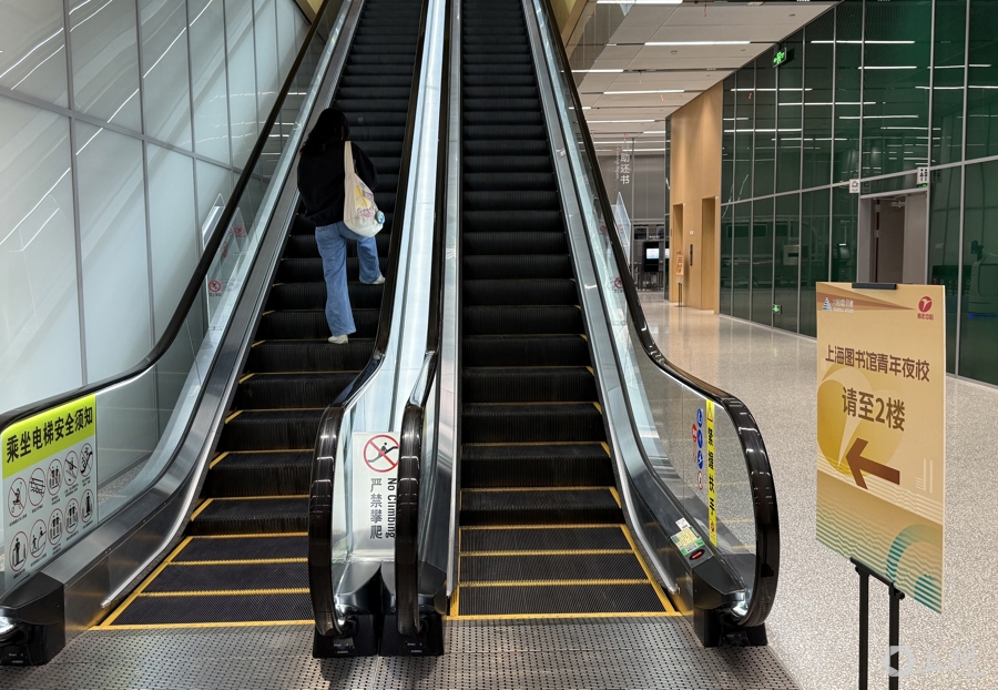 记者在上图东馆看到,从一楼扶手电梯入口,“上海图书馆青年夜校”的提示牌和地贴一路引领学员找到教室所在地。“很清晰,又有仪式感。”有学员表示。被提示牌吸引注意力的年轻人不在少数,“了解一下,之后有感兴趣的课程或许也能上夜校”。