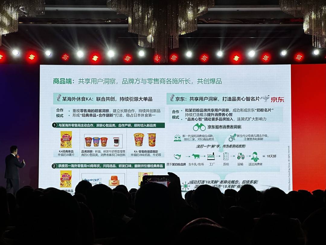 章一博以日本著名休闲零食品牌卡乐比和零售商的合作举例:卡乐比的经典单品是幸福奶油薯片,而某个与其长期合作的零售商通过大量销售数据分析发现,杯面、杯装牛奶是零售商的心智品类,且消费者喜爱口味上的创新,在这样的背景下,卡乐比与零售商合作,推出零售商渠道限定的幸福奶油味杯面,顺利切入新品类市场。