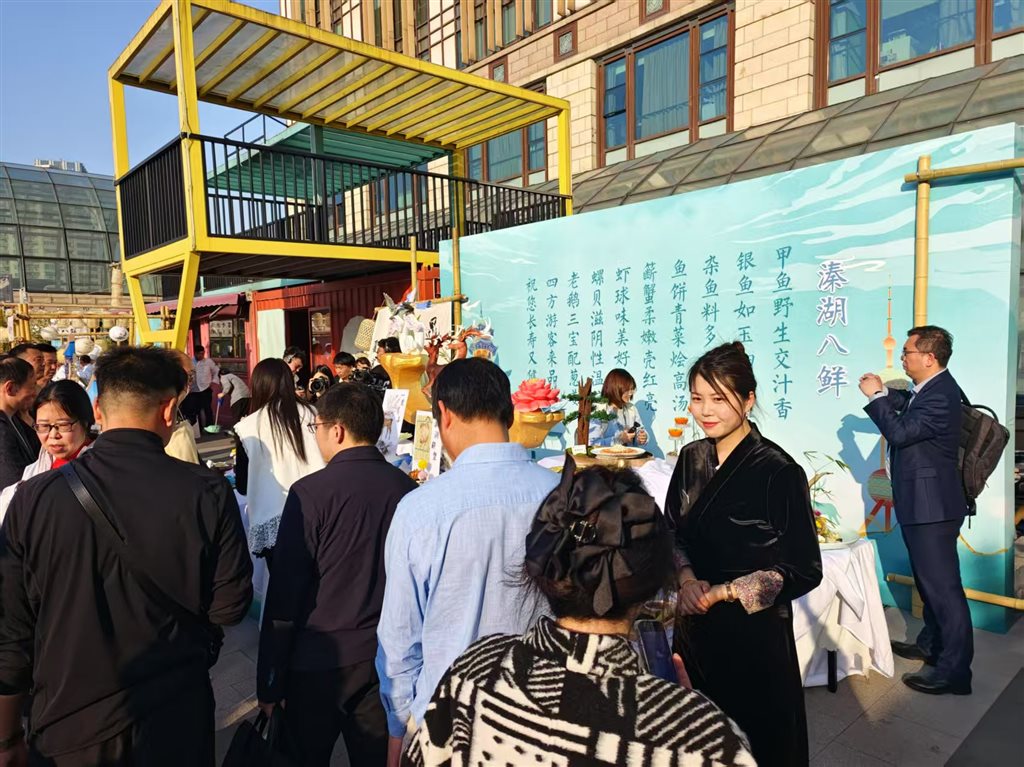 除了内容丰富、干货满满的推介会,姜堰区还在上海环球港同步举办了集文旅路演、美食品鉴、农产品展销等为一体的溱湖湾旅游推介系列活动,打造“非遗雅集・国风漫游记”“视听盛宴・舌尖上的溱湖”“互动狂欢・春日限定玩法”三大沉浸式体验场景,吸引了众多上海市民前来打卡,感受姜堰溱湖湾的独特魅力。