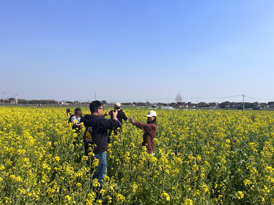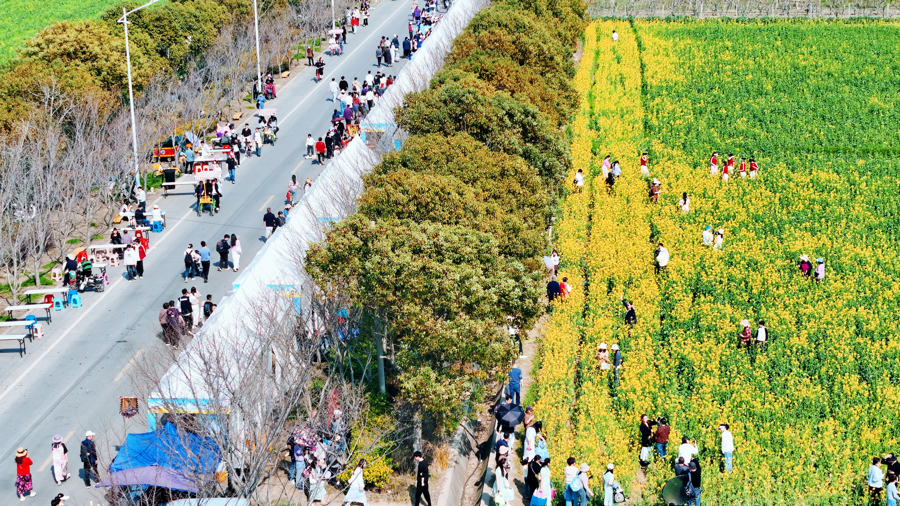 以油菜花为媒,大量游客慕名赶往庄行游玩。