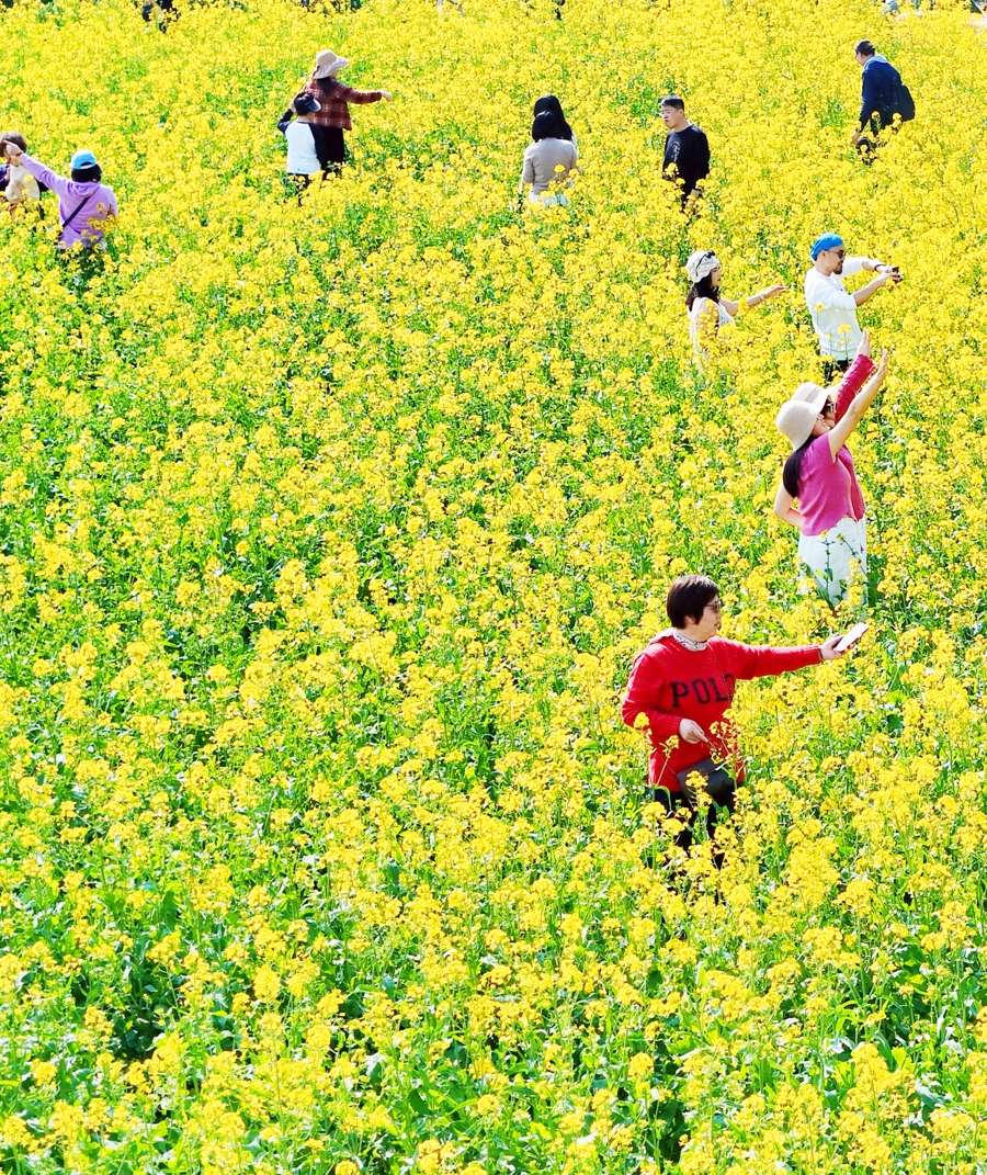 场面|奉贤油菜花海人潮涌动