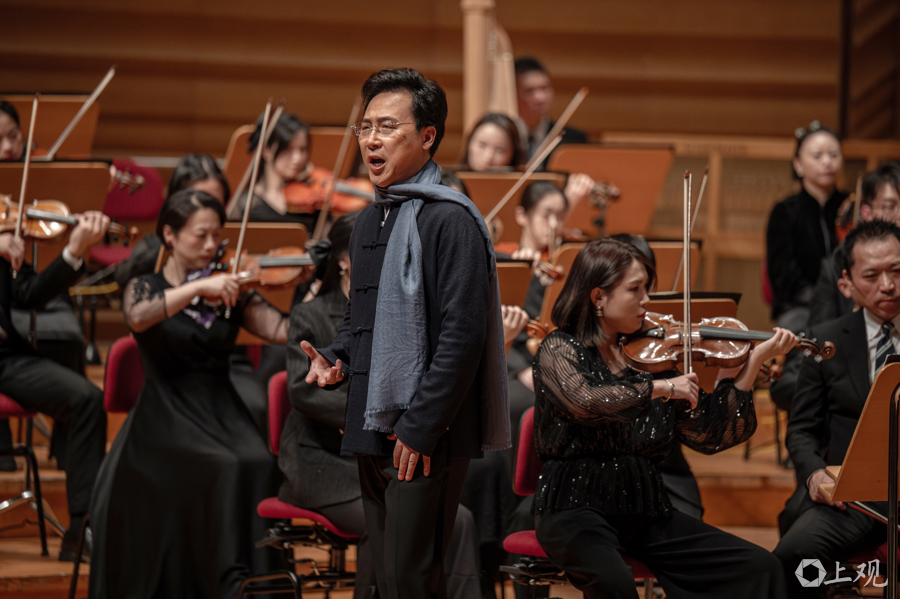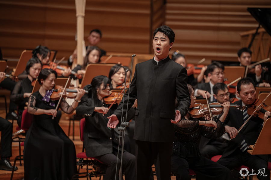 青年歌唱家张功浩在《黄河大合唱》中担任男中音独唱,精湛的演绎展现出上海新生代歌唱家的实力。