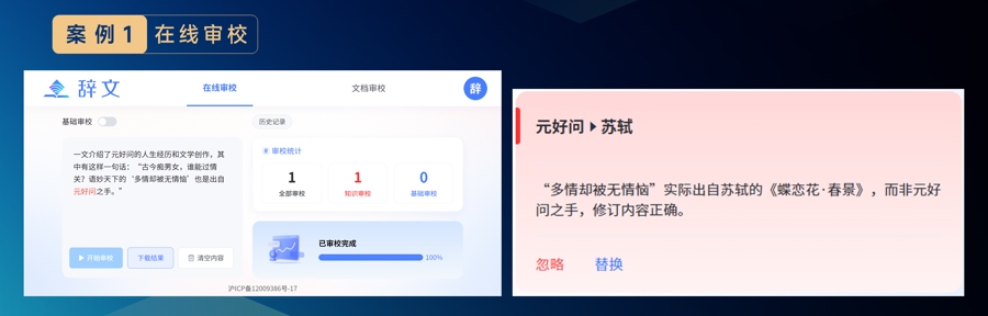 据悉,目前该产品已应用于人文社科、科学技术等出版领域的文本审校,未来还将拓展至新闻传媒、教育科研等场景,致力于成为内容生产领域的“数字质检员”。