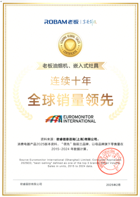 截至目前,老板电器燃气品类已连续10年蝉联全球销量冠军,其创新成果更接连斩获德国iF设计奖、红点奖及Good Design等国际权威奖项,这不仅是市场对“燃气专家”的专业认可,更是中国厨电企业从技术跟随者转向标准制定者的生动注脚。